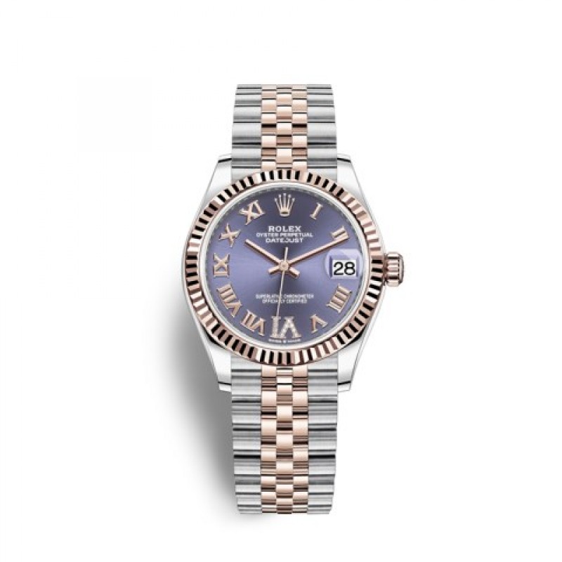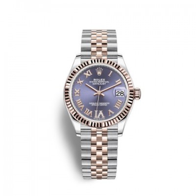 Rolex-Ladies DateJust Series 278271-63361 Vivi Terong Ungu Alfabet Romawi (M278271-0020) Jam Tangan Mekanis Otomatis Wanita Baja Emas Everose