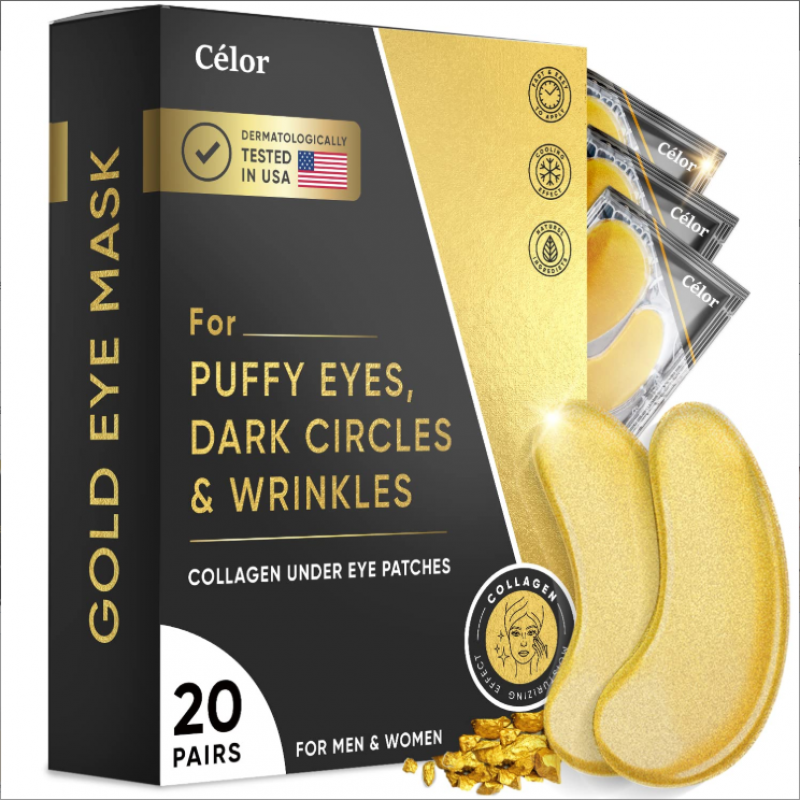 Penutup Bawah Mata (20 Pasang) - Masker Bawah Mata Asam Amino dan Kolagen Emas untuk Wajah Ca