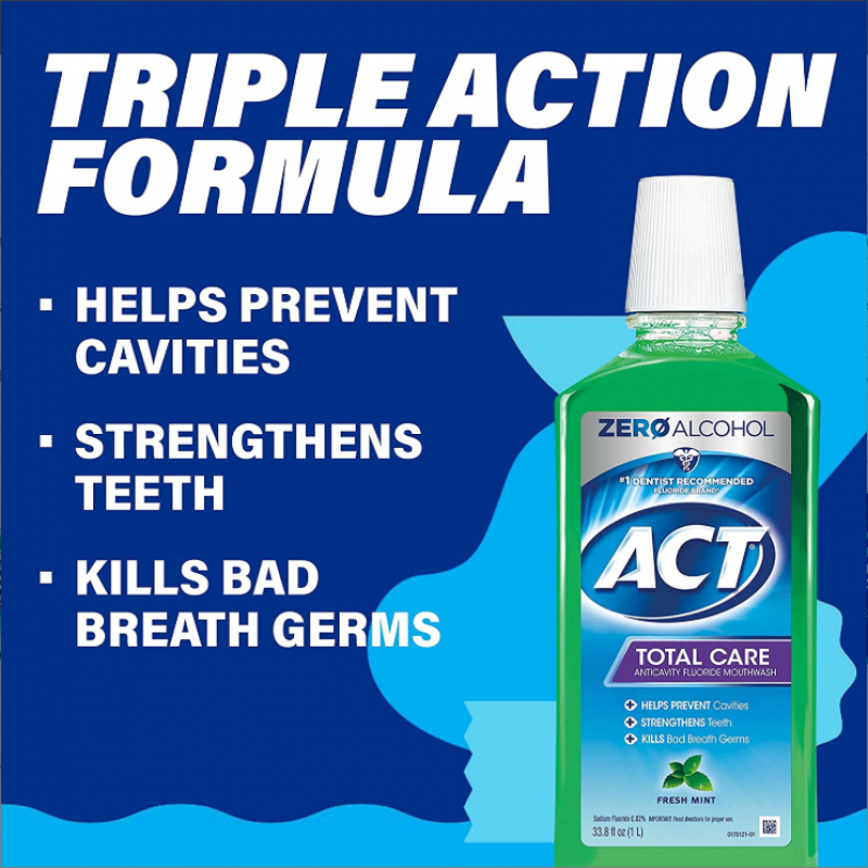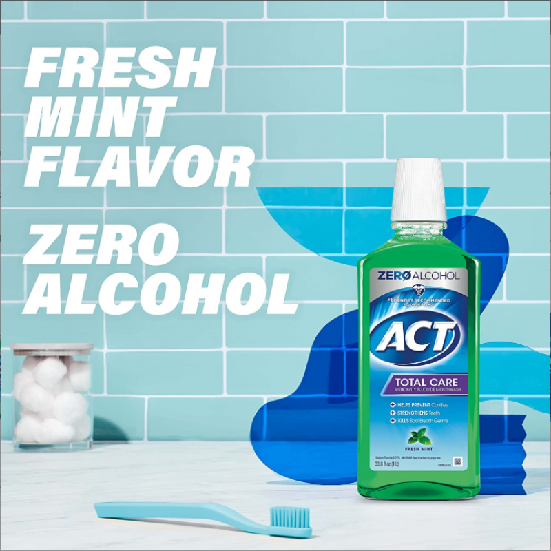 ACT Total Care Zero Alkohol Obat Kumur Anticavity Fluoride 33,8 fl. Aktif. mint segar